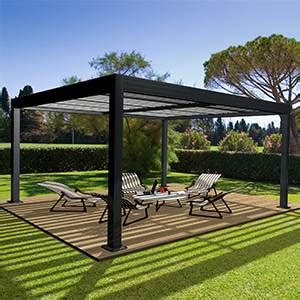 La pergola dispose d’une toiture-modulaire 100% étanche productrice d’électricité composée de modules photovoltaïques.